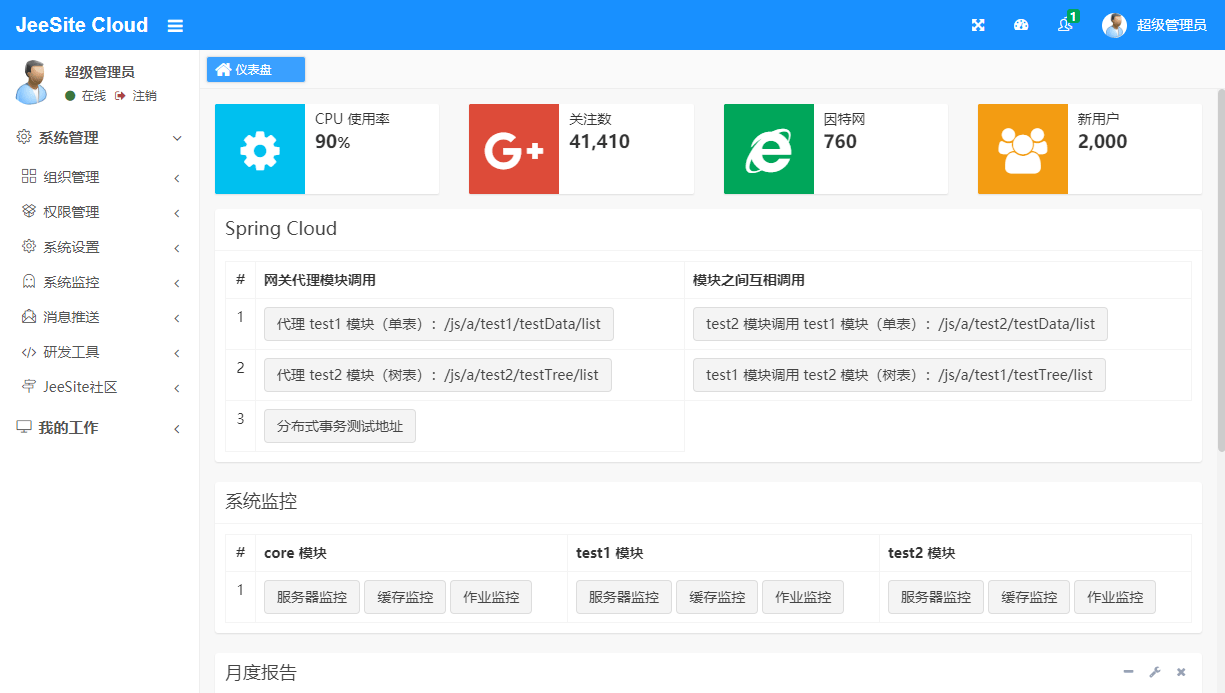 - 在 JeeSite 单应用基础之上,完成的 Cloud 功能,使用经典开发模式,就像开发单应用一样开发分布式应用